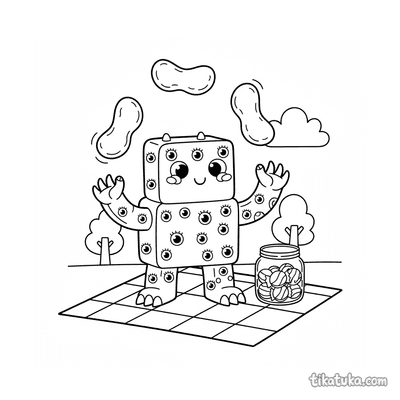 Monstro Quadrado Desempacando Cesta