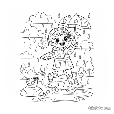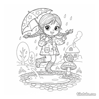 Esta coleção reúne desenhos para colorir que capturam momentos de alegria. As páginas apresentam cenas como crianças pulando em poças de chuva e personagens felizes, perfeitas para expressar a criatividade.