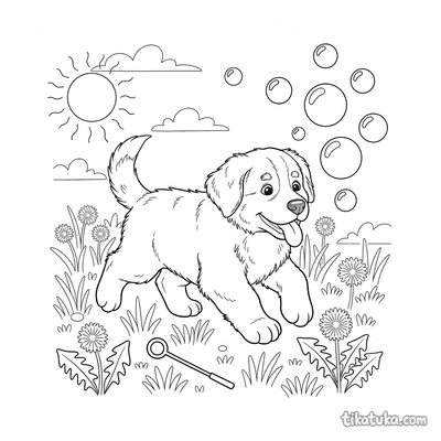 Filhote de Cão da Montanha Bernês Perseguindo Bolhas