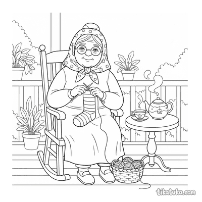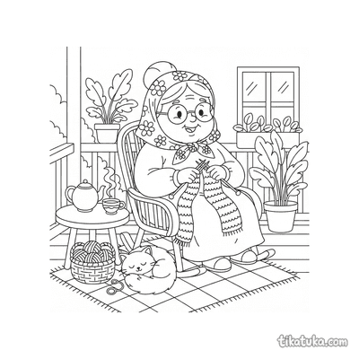 Aqui você encontra vovós tricotando na varanda, avôs em cadeiras de balanço e até criaturas divertidas, como um monstro quadrado fazendo um cachecol comprido ou um ouriço no banco do parque. Gatos e tartarugas também aparecem entretidos com suas agulhas e novelos de lã, em cenas cheias de charme e detalhes. Todas as ilustrações estão prontas para baixar e imprimir em casa, uma de cada vez ou em conjunto para uma atividade prolongada. Os traços limpos e definidos facilitam o preenchimento com lápis de cor, e as imagens também podem ser coloridas diretamente na tela, se preferir.