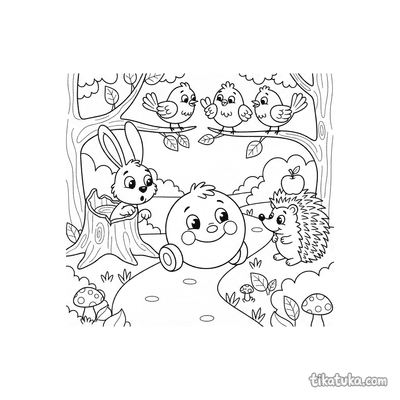 As páginas para colorir mostram o Kolobok em sua aventura pela trilha da floresta, passando por animais como o ouriço e o urso dormindo sob um grande cogumelo. Cada cena ilustra um momento da narrativa, permitindo que as crianças revivam a história enquanto pintam. Você pode baixar e imprimir todas as cenas de uma vez para criar um livro de colorir personalizado sobre a fábula. Os desenhos em preto e branco têm traços claros, ideais para colorir com lápis ou online, explorando cada encontro do Kolobok em sua fuga rolando.
