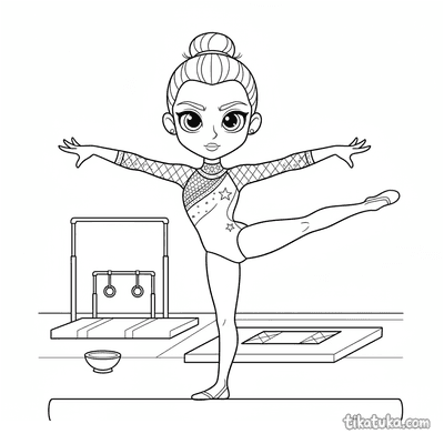 Ginasta em Leotardo Praticando na Trave de Equilíbrio