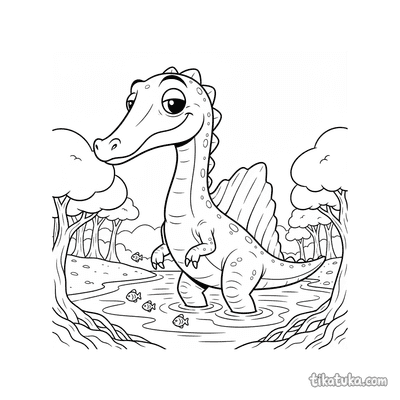 Espinossauro pescando entre raízes de mangue