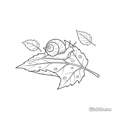 Caracol Pequeno em uma Folha de Bordo Molhada pela Chuva
