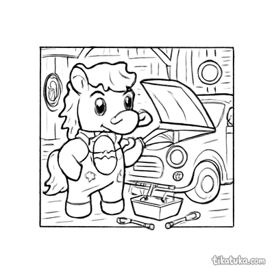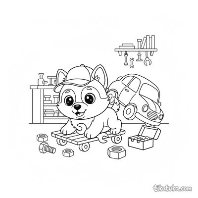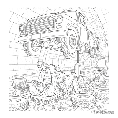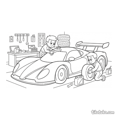Aqui você encontra mecânicos consertando carros de corrida na garagem, personagens como um husky mecânico ou um coelho padeiro no pit stop, e até cenários criativos com tanques steampunk e mecânicos zumbis em esgotos. Cada página traz uma cena diferente com ferramentas, caixas de ferramentas e veículos para colorir. Todas as 26 ilustrações estão em preto e branco, com traços bem definidos que são fáceis de imprimir em casa. Você pode baixar o conjunto completo de uma vez ou colorir online diretamente no site, escolhendo as cenas que mais interessam às crianças.
