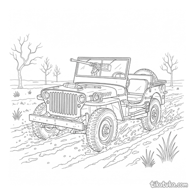 Jeep da Segunda Guerra num Campo Lamacento