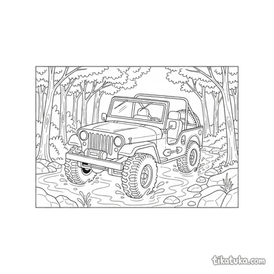 Jipe Militar Atravessando um Racho Raso