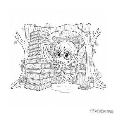 Fada Bibliotecária Organizando Livros Brilhantes