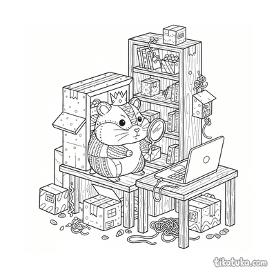 Hamster determinado no forte de papelão com espelho