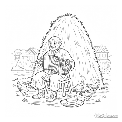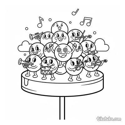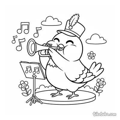 Aqui você encontra músicos da vila, maestros e criaturas encantadoras, como um husky, um polvo ou uma corujinha, cada um dedicado à sua música. As cenas incluem desde um músico sob uma árvore até apresentações animadas com acordeão, trompete e outros instrumentos. Todas as 56 ilustrações estão disponíveis para baixar e imprimir em preto e branco, com traços nítidos ideais para colorir. É uma forma prática de ter uma grande variedade de temas musicais prontos para a criançada explorar com lápis de cor e canetinhas.