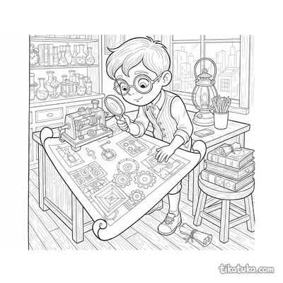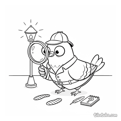 As crianças encontrarão aqui cenas de mistério, como um pombo detetive à procura de pistas, um guardião minotauro no seu labirinto ou um mapa marcado com um X. Há também situações curiosas, como um sapo que comemora cedo demais e a descoberta inesperada de um objeto perdido. Todas as 30 ilustrações estão disponíveis para baixar num único ficheiro PDF, ideal para imprimir várias páginas de uma vez. Os contornos nítidos e o espaço em branco permitem que os pequenos artistas usem lápis de cor, canetas de feltro ou pintem online sem preocupações com manchas.