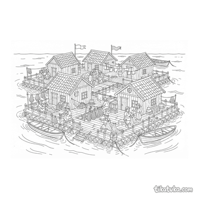 Casas de Vila de Pescadores em Plataformas Flutuantes