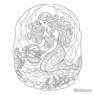 Aqui você encontra ninfas da água espiando de vitórias-régias, ninfas do rio em pontes antigas e ninfas estelares tecendo constelações. Também há cenas de ninfas curando pássaros petrificados, colhendo lágrimas de pedra ou celebrando na floresta. Todos os 26 desenhos têm contornos nítidos em preto e branco, ideais para imprimir em casa ou na escola. É fácil baixar várias páginas de uma vez para projetos em grupo ou para colorir diretamente no seu dispositivo.