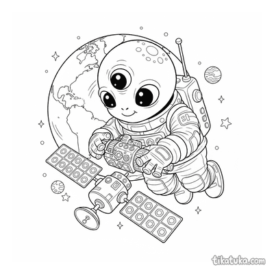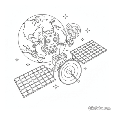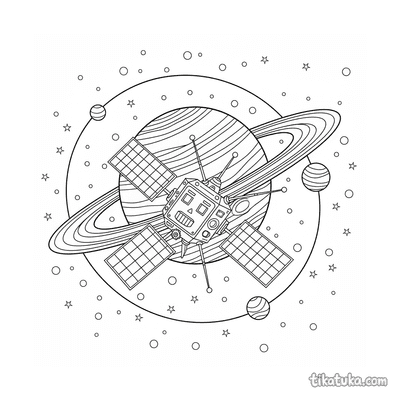 Aqui você encontra foguetes orbitando planetas com anéis, satélites com painéis solares em operação e robôs astronautas consertando equipamentos no espaço. As cenas incluem sondas robóticas, foguetes de estilo retro e gigantes gasosos anelados, todos em suas trajetórias orbitais. Estas páginas em preto e branco têm contornos nítidos, ideais para imprimir em casa ou na escola. Você pode baixar todas as 21 ilustrações de uma vez para ter uma coleção completa de aventuras espaciais para colorir.