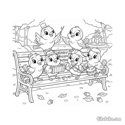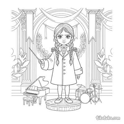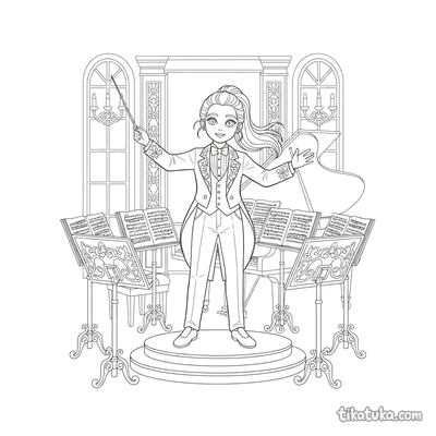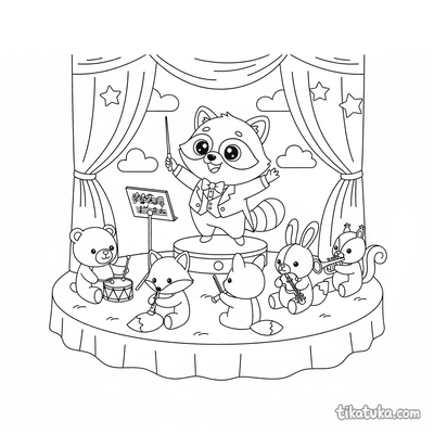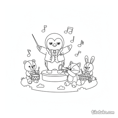 As crianças encontrarão cenas como um menino regendo uma orquestra de utensílios de cozinha, um cavalo-marinho maestro com um recife de coral e uma banda de torta de frutas marchando na mesa. Há também maestros animais, como um husky, uma raposa e um coala, além de bandas marciais em desfile e um caracol tocando tuba. Todas as 53 ilustrações estão disponíveis para baixar e imprimir em casa, ideais para uma sessão de colorir em grupo. Os contornos nítidos facilitam o preenchimento com lápis de cor, permitindo que os pequenos criem suas próprias versões coloridas dessas orquestras divertidas.