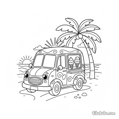 Caminhão de Sorvete Retrô Estacionado Sob uma Palmeira