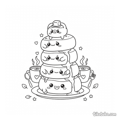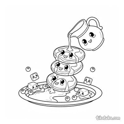 Aqui você encontra panquecas empilhadas, algumas com rostos engraçados, outras cobertas com calda escorrendo ou acompanhadas de frutas vermelhas. Há também cenas divertidas, como uma festa no escorregador de xarope, e porções generosas com manteiga no topo. Todos os 24 desenhos têm contornos nítidos em preto e branco, ideais para serem coloridos com lápis, giz de cera ou canetinhas. Você pode baixar as páginas individualmente ou imprimir várias de uma vez para uma tarde de diversão em família ou na escola.