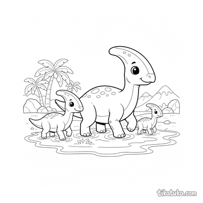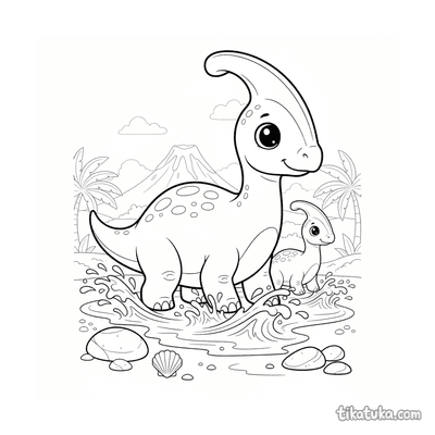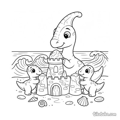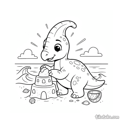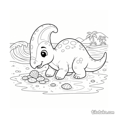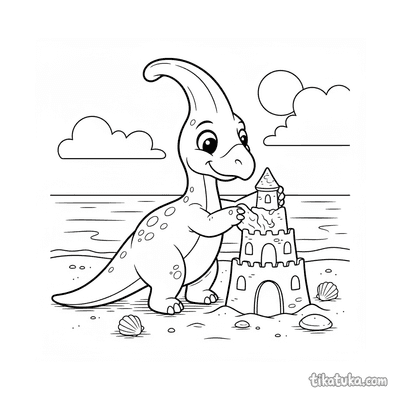 As páginas para colorir retratam cenas específicas do parasaurolophus, como famílias na praia antiga, filhotes coletando conchas ou perseguindo caranguejos, e até mesmo dinossauros construindo castelos de areia. Cada cena captura momentos lúdicos e detalhes anatômicos distintos. Você pode baixar e imprimir qualquer uma das 19 ilustrações em alta qualidade, com traços limpos ideais para lápis de cor ou giz de cera. É uma forma prática de ter uma variedade de atividades sobre este dinossauro sempre à mão.