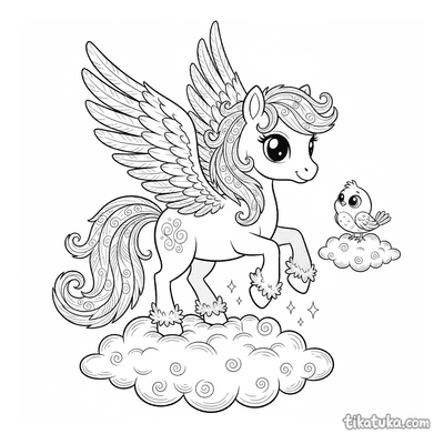Nesta secção, encontrará o Pégaso a saltar por entre nuvens ocidentais, a atravessar tempestades ou até a desempenhar papéis inusitados, como um listonosz com uma sacola postal ou um visitante tranquilo numa biblioteca. Há também cenas do Pégaso a pastar em prados de nuvens, a praticar aterragens ou a ser montado por uma jovem heroína, oferecendo uma grande variedade de cenários para colorir. Todos os desenhos estão disponíveis em formato de contornos a preto e branco, ideais para uma impressão nítida. Pode descarregar a coleção completa de uma vez ou colorir cada página diretamente no ecrã, proporcionando horas de diversão criativa.