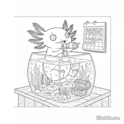 Axolotle exagerado no aquário com periscópio