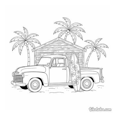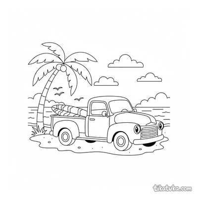 Aqui você encontra caminhonetes retrô estacionadas em mirantes de montanha, acampamentos à beira de lagos e campos de girassóis. Também há cenas com pranchas de surf na praia e caminhonetes carregadas com abóboras, perfeitas para explorar diferentes histórias. Todos os desenhos estão em preto e branco, com traços bem definidos que facilitam o preenchimento. Você pode baixar as páginas individualmente ou imprimir várias de uma vez para ter atividades por um bom tempo.