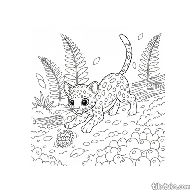 Filhote de Jaguarundi Perseguindo uma Pinha Rolante