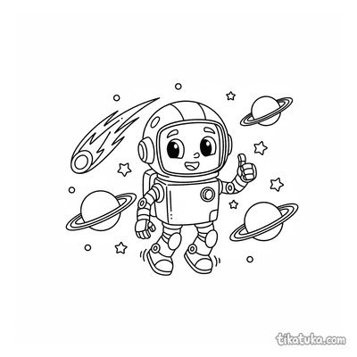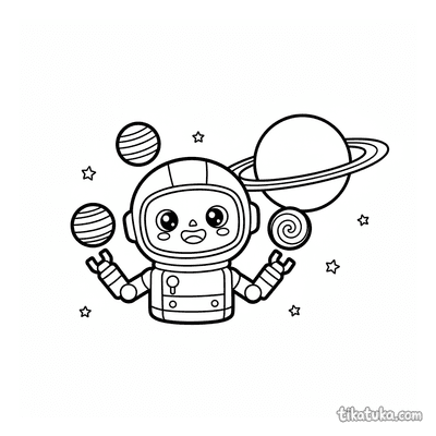 As crianças encontrarão foguetes retrô viajando entre planetas, astronautas robôs flutuando na lua ou fazendo malabarismos com planetas anelados. Há também baleias espaciais nadando por nebulosas e cenas com planetas de diferentes tamanhos e características. Todos os desenhos estão em preto e branco, com traços nítidos, prontos para serem baixados e impressos em casa. É possível colorir online ou imprimir várias páginas de uma vez para criar um álbum completo de aventuras no sistema solar.