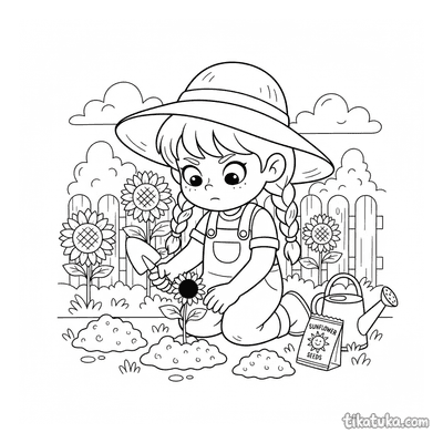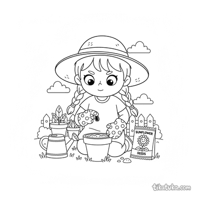 As crianças encontrarão aqui cenas variadas, como uma menina plantando sementes de girassol ou mágicas, um alienígena cultivando cristais em um asteroide e até um zumbi amigável regando suas plantas. Há também personagens curiosos, como um axolote entre a vegetação subaquática e um preguiçoso sonolento na floresta, todos conectados ao tema do plantio e do crescimento. Você pode baixar e imprimir todas essas páginas em preto e branco, com traços bem definidos que são ideais para lápis de cor. É uma forma prática de ter uma grande variedade de atividades sobre jardinagem e natureza sempre à mão, perfeita para imprimir várias de uma vez para uma tarde de diversão.