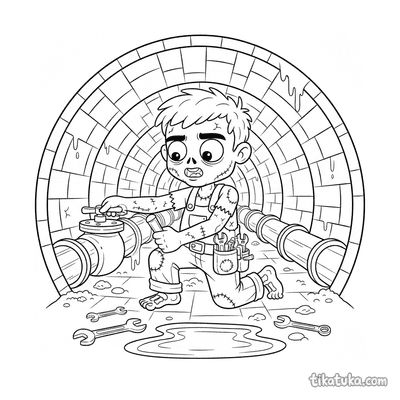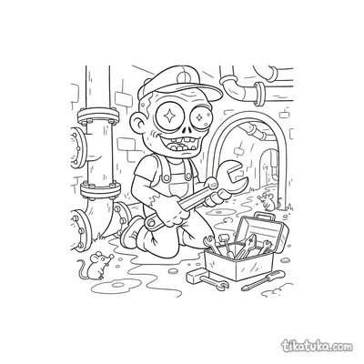 As ilustrações incluem cenas como um guaxinim ou um pinguim consertando uma torneira com vazamento, além de zumbis encanadores trabalhando em coletores de esgoto e canos. Você verá diferentes personagens, desde um zumbi amigável até profissionais focados em resolver problemas de encanamento. Todos os desenhos estão em preto e branco, com traços bem definidos que facilitam o preenchimento com lápis de cor. É possível colorir online diretamente no site ou baixar as páginas em PDF para imprimir várias de uma vez e ter material para horas de diversão.