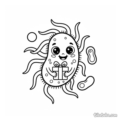 Bactéria Fofa com Flagelos Segurando Presente