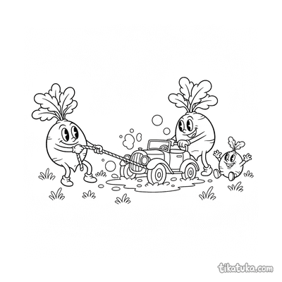 Aqui você encontra rabanetes em um maço simples, famílias crescendo na terra e até participando de um concurso de puxar. Há cenas como rabanetes puxando um carro da lama, amigos rabanete e nabo pulando corda e punhados mostrando suas raízes no solo. São 10 páginas para colorir com traços limpos em preto e branco, perfeitas para imprimir em casa ou colorir diretamente na tela. Todas as ilustrações estão prontas para download gratuito e podem ser impressas em lote para horas de diversão criativa.