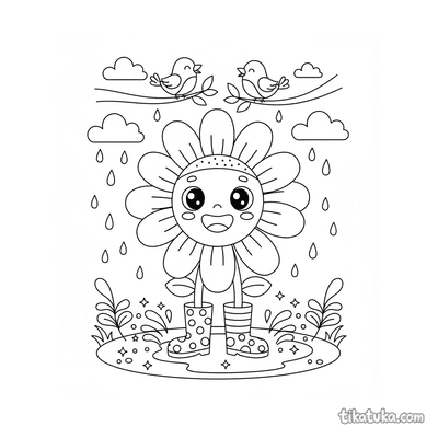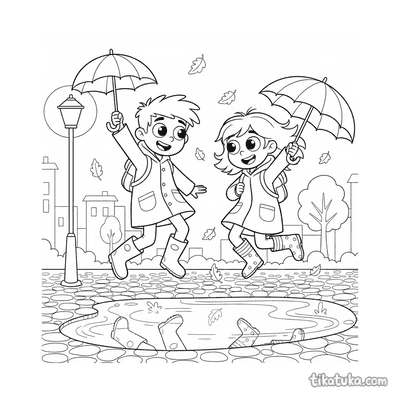 Esta coleção reúne desenhos para colorir que capturam a magia e as brincadeiras da chuva. As páginas apresentam cenas com crianças, animais e elementos típicos de dias chuvosos.