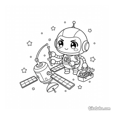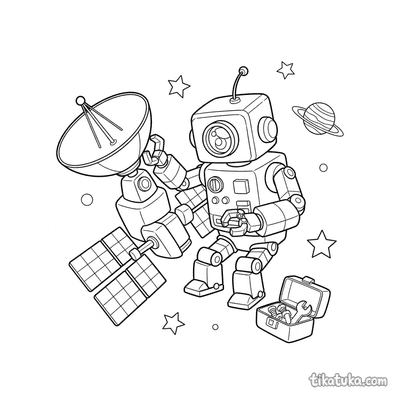 Os desenhos mostram cenas específicas, como um astronauta ou um robô astronauta consertando um satélite em órbita. Também há imagens de alienígenas reparando naves e foguetes retro no espaço, oferecendo uma variedade de cenários de conserto para explorar. Todas as 103 páginas estão disponíveis para baixar e imprimir em preto e branco, com traços limpos ideais para colorir. Você pode imprimir várias cópias de uma vez para usar em sala de aula ou colorir diretamente no site, se preferir.