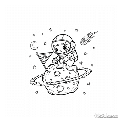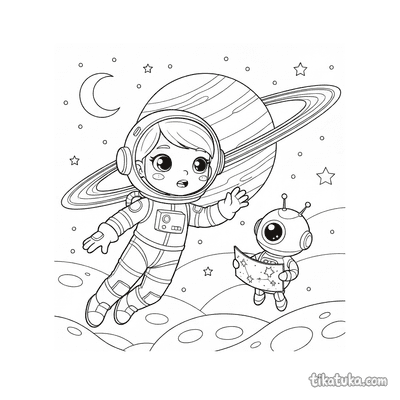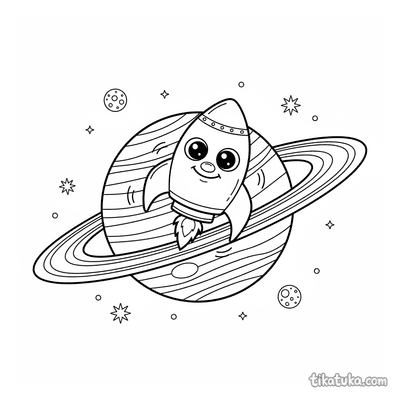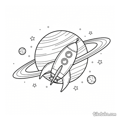 As crianças encontrarão aqui foguetes orbitando planetas com anéis, robôs astronautas flutuando perto destes gigantes gasosos e meninas astronautas explorando estes corpos celestes. Os desenhos de anéis em preto e branco têm contornos nítidos, ideais para imprimir em lote para a sala de aula ou para colorir diretamente no ecrã.