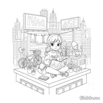 Aqui você encontra cenas como um menino mapeando constelações com um telescópio, um guaxinim super-herói aterrissando, um estorninho cantando e até um aprendiz de ninja se equilibrando na chuva. Heróis plantas, pássaros observadores e animais curiosos também fazem parte das histórias que se passam nestes telhados. Com 32 páginas disponíveis, você pode baixar e imprimir várias aventuras de uma vez para horas de diversão. Todos os desenhos têm contornos nítidos em preto e branco, ideais para as crianças preencherem com lápis de cor, giz de cera ou canetinhas, seja no papel ou colorindo diretamente na tela.