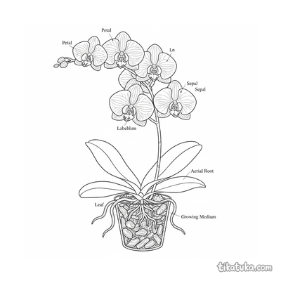 Ilustração Botânica de Orquídea com Raízes