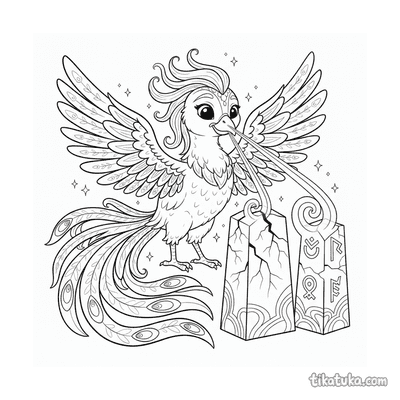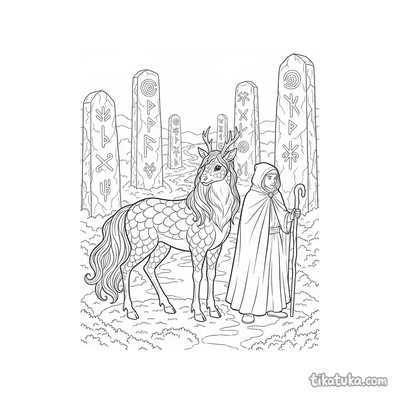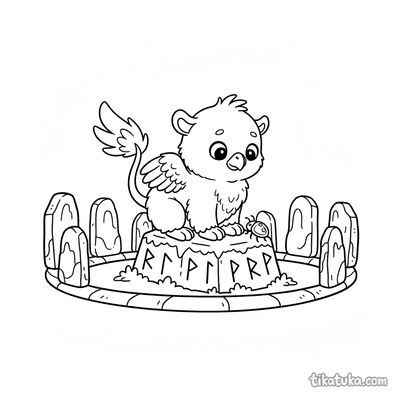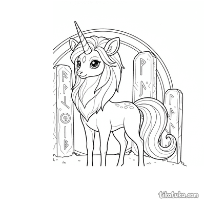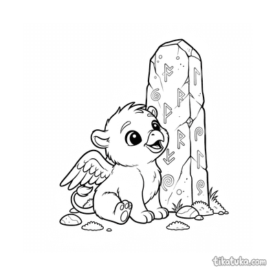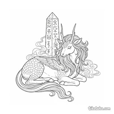 As cenas incluem um dragão jovem traçando pedras rúnicas, uma fênix surgindo de um obelisco rúnico e um unicórnio guardião junto a menires. Você também encontrará um filhote de grifo entre monólitos, uma serpente marinha enrolada em uma pedra submersa e um potro de kirin escondido atrás de uma pedra rúnica. Todas as ilustrações estão em preto e branco, com traços limpos que facilitam o preenchimento pelas crianças. Você pode baixar e imprimir qualquer desenho gratuitamente, ou colorir online diretamente no site, explorando diferentes combinações para estas runas e criaturas fantásticas.