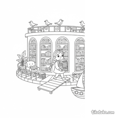 As crianças encontrarão aqui uma variedade de cenas marítimas, desde um pequeno barco a vela navegando no oceano até um navio à vela passando sob uma ponte. Há também ilustrações com personagens, como um husky em um veleiro ou uma coruja tentando consertar um barquinho, além de cenários criativos como uma biblioteca flutuante. Todos os 15 desenhos estão disponíveis para baixar e imprimir em casa com facilidade. As linhas em preto e branco são claras e bem definidas, ideais para os pequenos colorirem com lápis, giz de cera ou canetinhas, sem preocupação com manchas ou borrões.