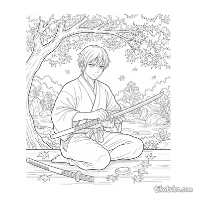 Entre os desenhos disponíveis, você encontrará aprendizes de samurai em momentos de concentração, como meditar junto a cachoeiras, penhascos à beira-mar ou sob árvores de bordo. Há também cenas de ação, como a prática do iaijutsu e do iaido no pátio, mostrando o desembainhar da katana. Todas as páginas são em preto e branco, com traços definidos que facilitam o preenchimento. Você pode baixar e imprimir cada ilustração individualmente ou usar a função de impressão em lote para ter várias atividades de uma vez, ideal para projetos em grupo ou para uma sessão prolongada de colorir.
