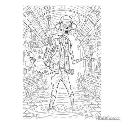 Encontre aqui cenas variadas do esgoto, incluindo zumbis amigáveis desempenhando tarefas do dia a dia. Você verá entregadores de pizza, músicos tocando guitarra, jardineiros cuidando de abóboras e figuras de terno segurando uma xícara, todos em seus cenários característicos. São 66 páginas para colorir com traços nítidos em preto e branco, perfeitas para serem baixadas e impressas em casa. As ilustrações oferecem contornos claros, ideais para uma experiência de colorir descomplicada, seja com lápis de cor ou online.