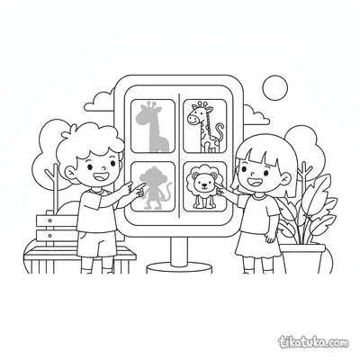 Crianças combinando sombras com animais na placa de jogo do zoológico