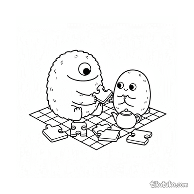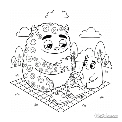 Aqui você encontra monstros geométricos passando geleia, amigos Mochi dividindo um morango gigante e criaturas fofinhas compartilhando biscoitos e doces. As cenas são variadas, com pratos, potes e até quebra-cabeças de biscoito sendo partilhados entre os personagens. Estes desenhos em preto e branco têm contornos nítidos, perfeitos para imprimir em casa ou na escola. Você pode baixar todas as 16 páginas de uma vez para ter uma atividade completa sobre o tema, ou colorir diretamente no site com nossas ferramentas digitais.