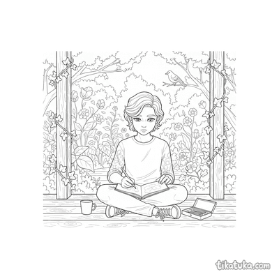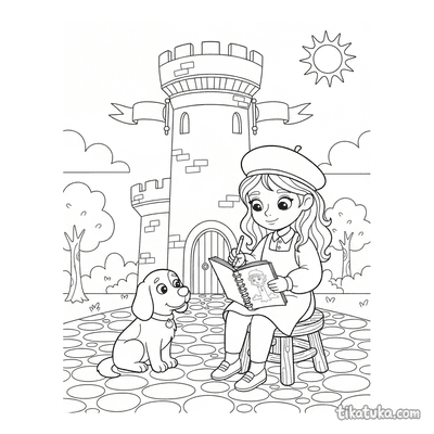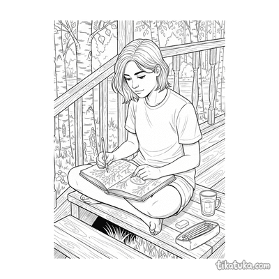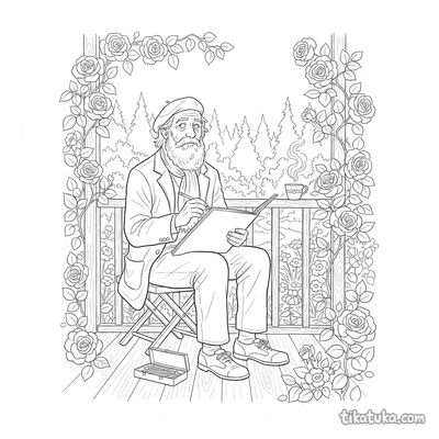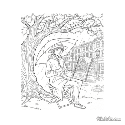 Os desenhos mostram situações variadas, como um artista no pátio de um castelo, uma raposa desenhando pombos em um banco, ou uma menina esboçando arquitetura e decorações de salão. Também há cenas de adolescentes e homens desenhando paisagens a partir de varandas, capturando a vista em seus cadernos. Todas as 30 ilustrações estão disponíveis para você baixar e imprimir em preto e branco, com traços limpos ideais para colorir. É uma ótima seleção para imprimir em bloco e oferecer a crianças que gostam de temas artísticos e criativos.