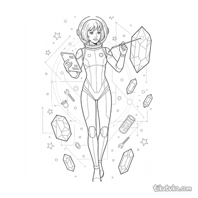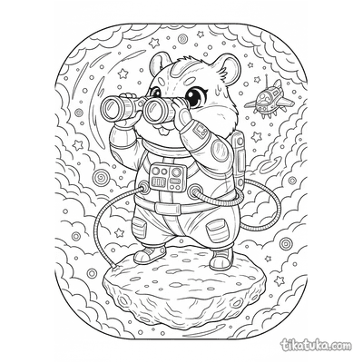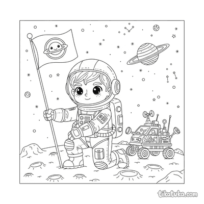 Aqui você encontra cenas variadas com o traje espacial em ação, como um menino astronauta plantando uma bandeira na Lua, um astrogeólogo examinando uma rocha lunar ou um alienígena em um asteroide. Também há personagens animais, como um husky astronauta e uma corujinha em passeio espacial, todos com seus trajes detalhados. Estes desenhos em preto e branco têm contornos nítidos, ideais para imprimir em casa ou colorir diretamente na tela. Você pode baixar todas as páginas de uma vez ou escolher suas favoritas para uma sessão de colorir.