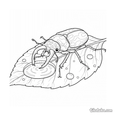 Aqui você encontra cenas variadas com o besouro veado, como ele descansando em uma folha, guardando uma gota de orvalho como um tesouro, ou até mesmo construindo uma rampa. Algumas imagens mostram o besouro cervo bebendo orvalho ou em posição de destaque, como num palco. Todas as 12 ilustrações estão em preto e branco, com traços bem definidos que facilitam o preenchimento. Você pode baixar e imprimir quantas cópias quiser, ideal para atividades em grupo ou para colorir diretamente na tela.