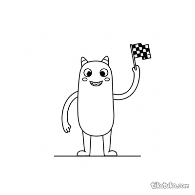 Potwór z długimi rękami machający kratkowaną flagą