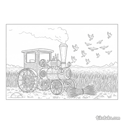 Aqui você encontra cenas detalhadas de tratores a vapor antigos arando campos de abóboras ou trigo, rolos compressores vintage em ruas de paralelepípedos e até submarinos a vapor explorando recifes de coral. Cada desenho captura a estética e os mecanismos característicos dessas máquinas históricas. Todas as 58 páginas para colorir estão disponíveis para baixar e imprimir em preto e branco, com traços limpos ideais para colorir. É uma ótima seleção para quem quer explorar o tema da era do vapor através da arte, podendo imprimir várias páginas de uma vez para atividades em grupo ou projetos escolares.