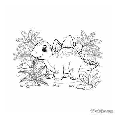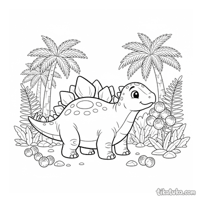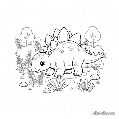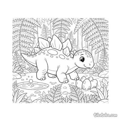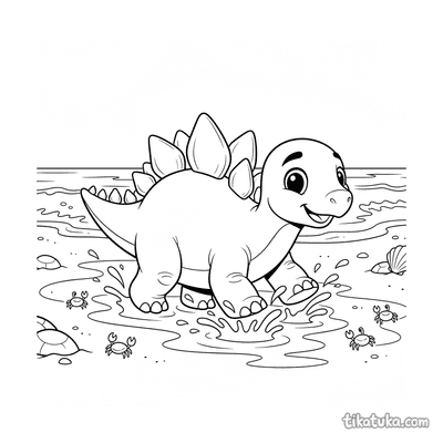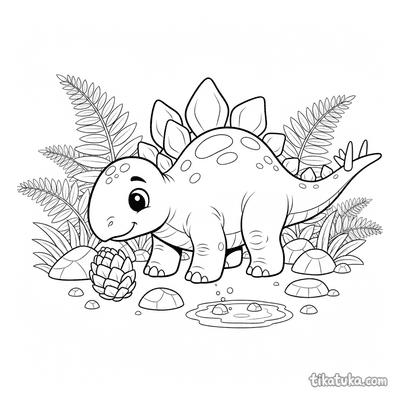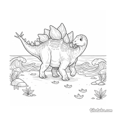 Nesta coleção, você encontra o Estegossauro em ambientes como florestas de samambaias, bosques e prados, muitas vezes interagindo com a natureza. Há cenas do dinossauro a mordiscar plantas, a espirrar em água rasa ou simplesmente a tomar sol numa duna, incluindo também versões mais fofas, como um filhote a brincar em poças de maré. Todos os desenhos estão disponíveis para baixar e imprimir em preto e branco, com traços limpos ideais para lápis de cor. É fácil obter várias cópias de uma vez para uma tarde de diversão ou para partilhar com os amigos na escola.