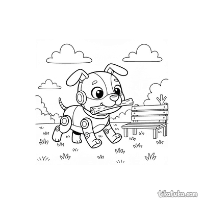 Cachorro Robot Buscando um Graveto no Parque