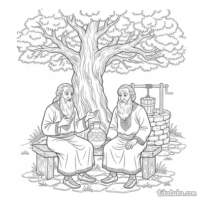 Anciãos da aldeia compartilhando histórias no poço